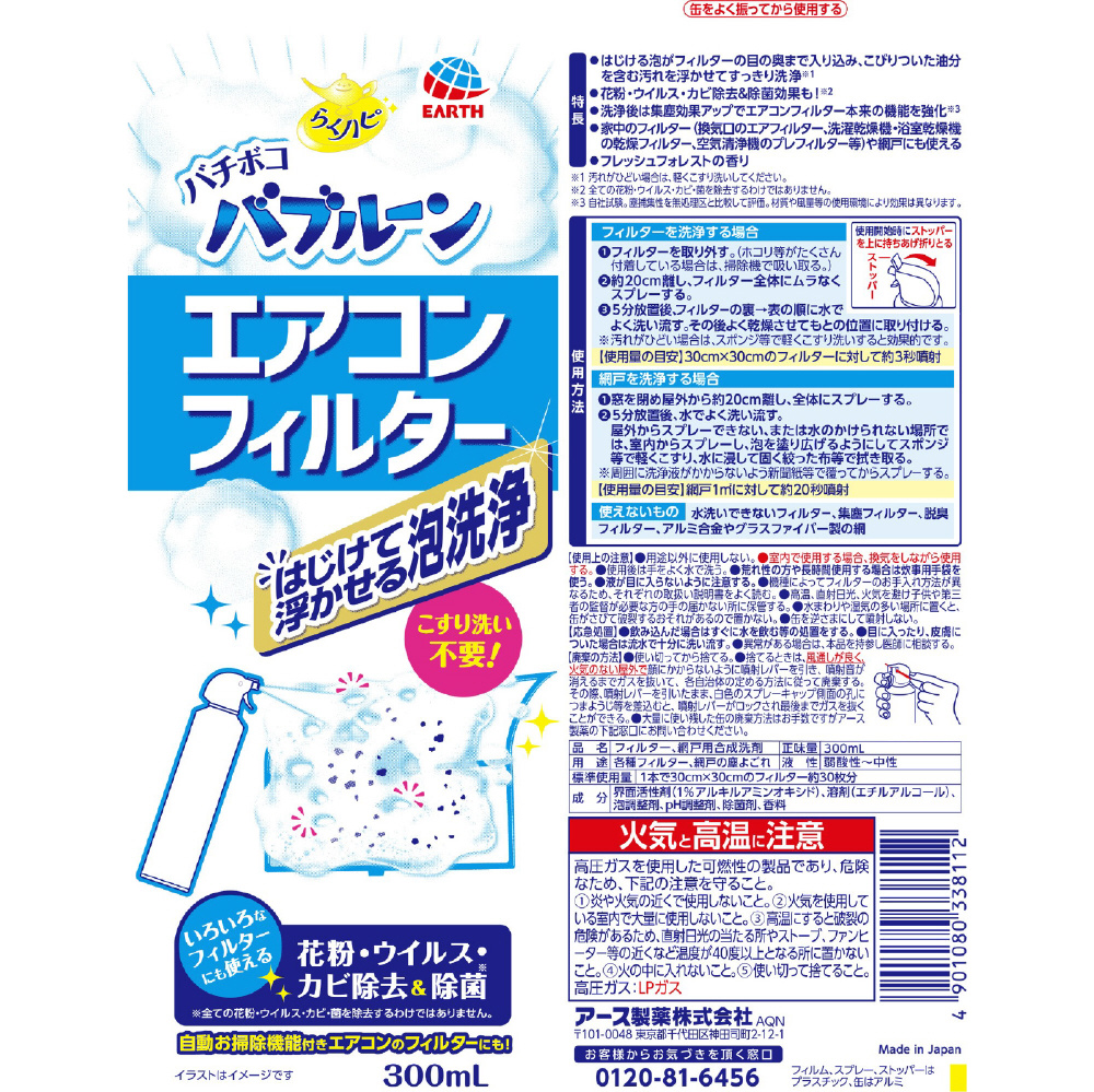 らくハピ バチボコバブルーン エアコンフィルター 300mL