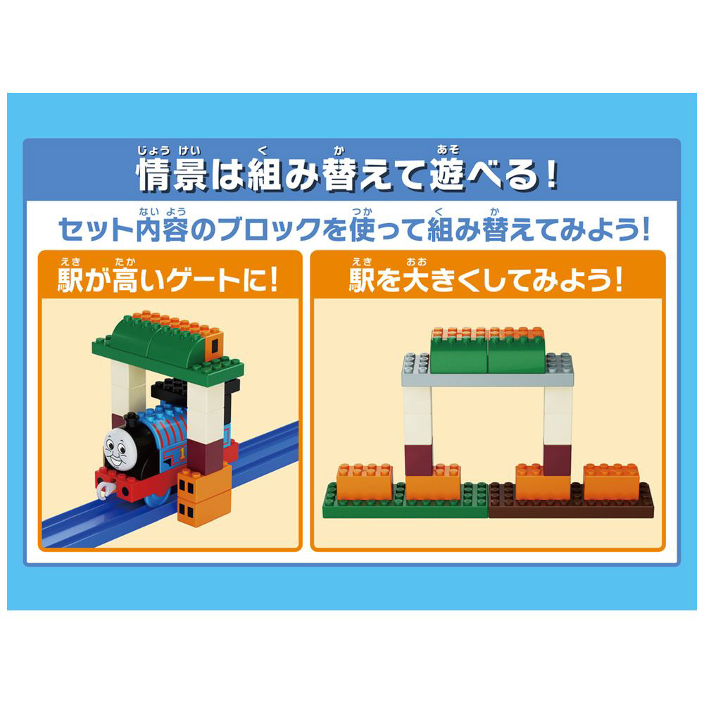 駅(情景)は、セット内容のブロックを使って組み替えて遊ぶことができます。