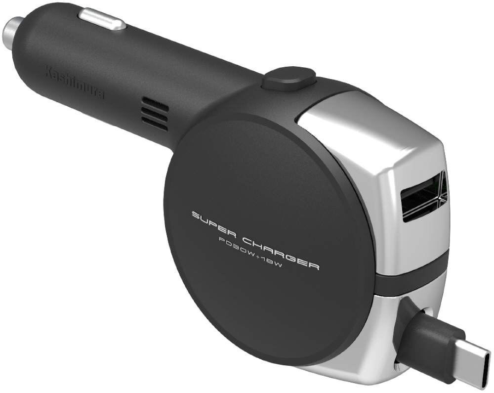 シガーチャージャー DC充電器リールPD30W+18WType-C DC-070