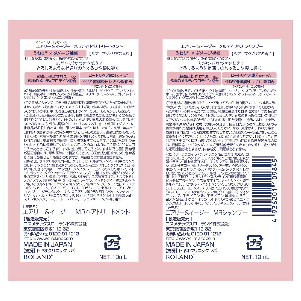 エアリー&イージー メルティリペア シャンプー&トリートメント トライアル 各 10mL