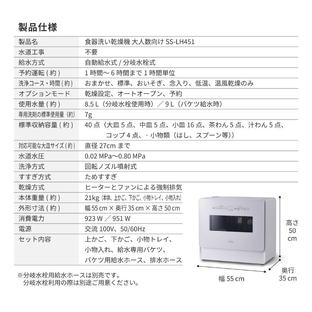 食器洗い乾燥機 ホワイト×ホワイト SS-LH451(W/W) [4人用 /設置工事不要]