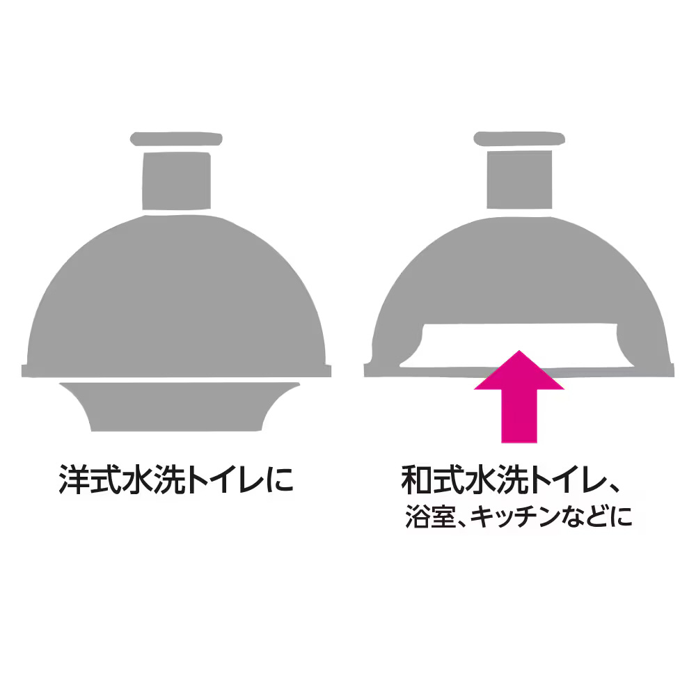 ヘッドの吸引口を押し込めば、和式水洗トイレ、浴室、キッチンの排水口にも使用できます。