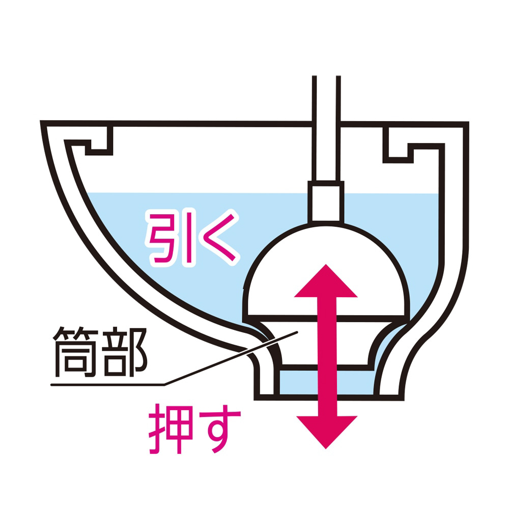 ヘッドのゴム先端が狭くなっていることにより、洋式便器の形状にも密着し、つまりを解消することができます。