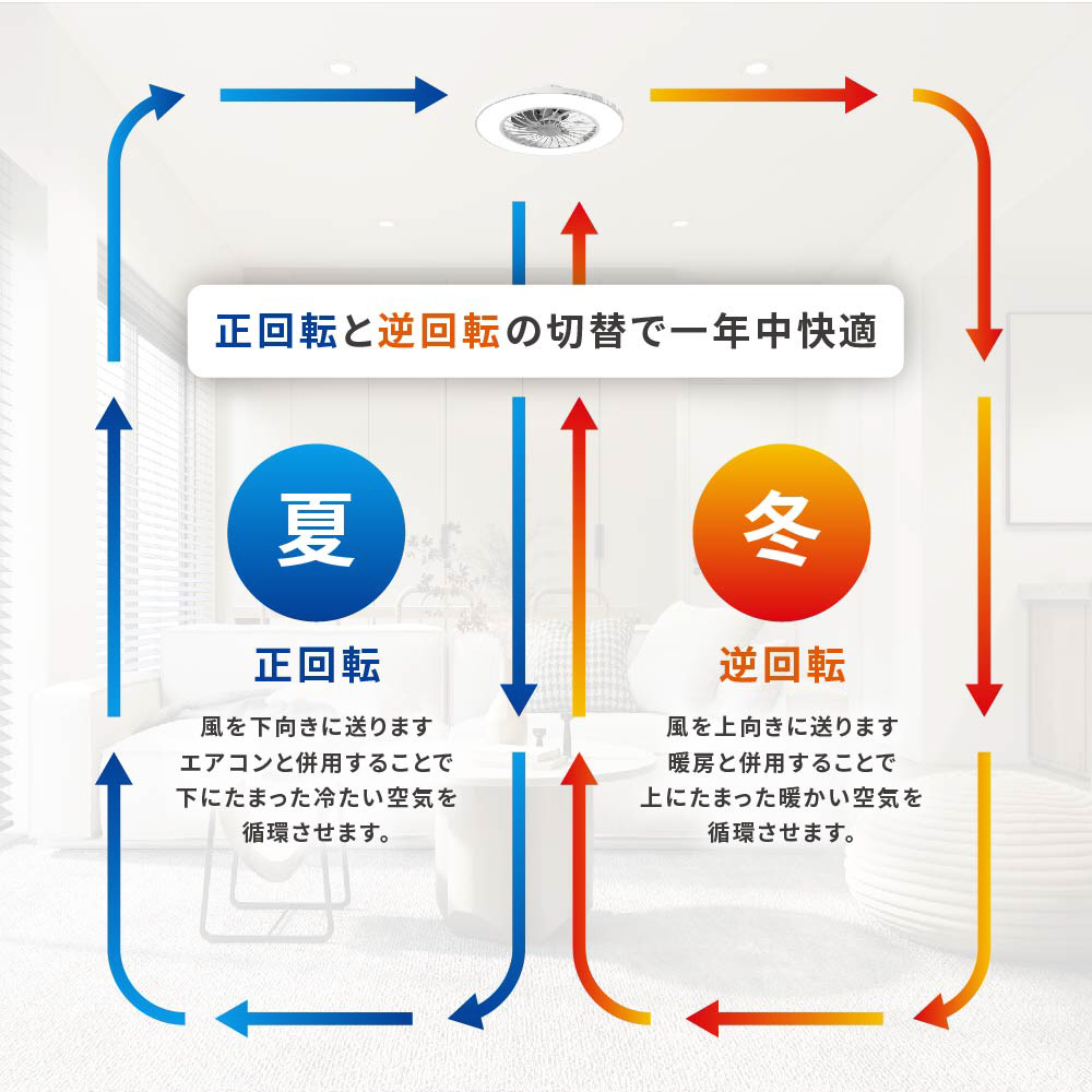 ● 正回転と逆回転の切替で一年中快適