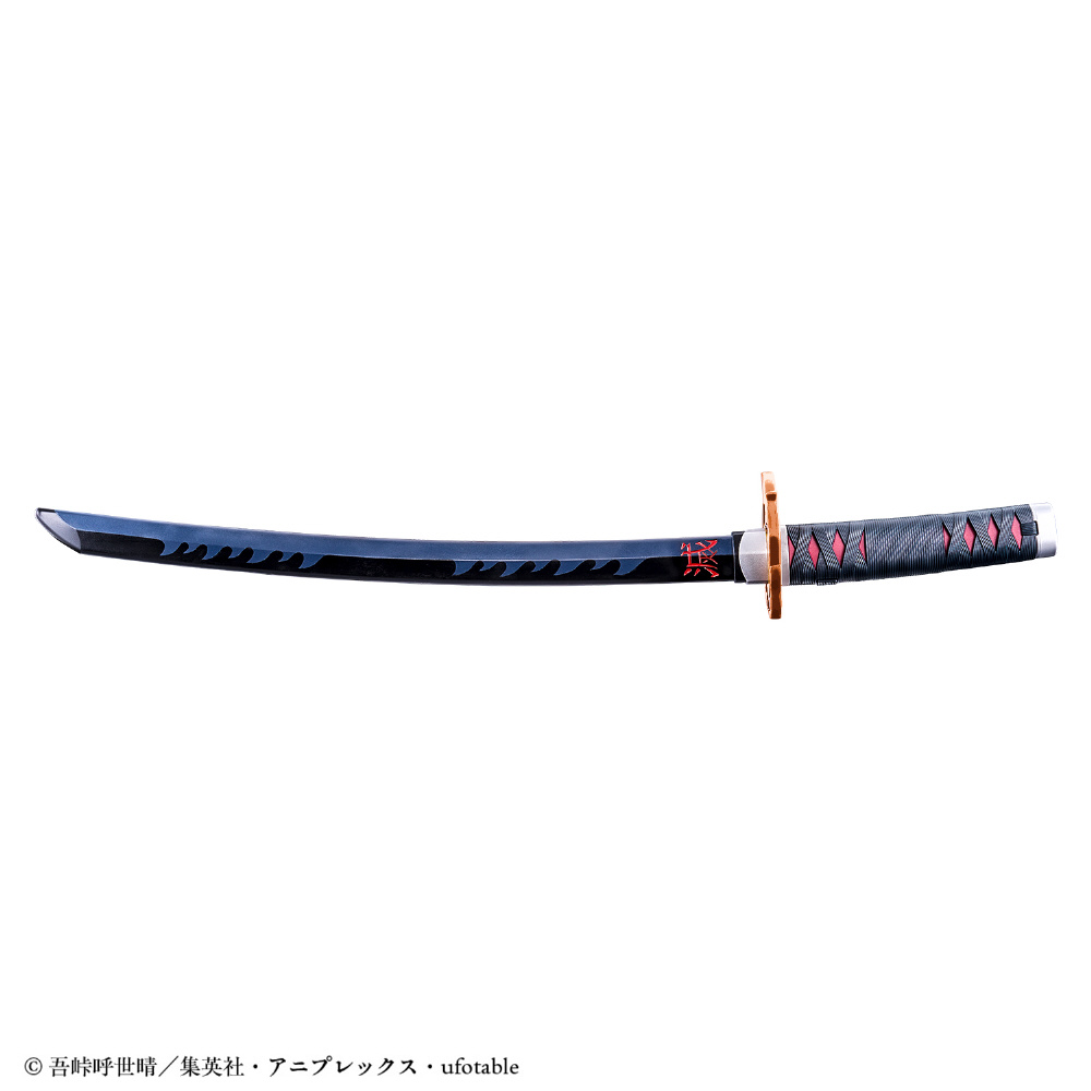 DX日輪刀シリーズより、「DX日輪刀〜竈門 炭治郎〜」が登場します。全長650mmのビックサイズで刀身バランスも劇中に近しい比率になり、よりなりきり遊びが楽しみやすい仕様になっております。攻撃音声が楽しめる「通常」モードや炭治郎のセリフ付き呼吸の技が楽しめる「水の呼吸」モードや「ヒノカミ神楽」モードなどを搭載した豪華仕様!