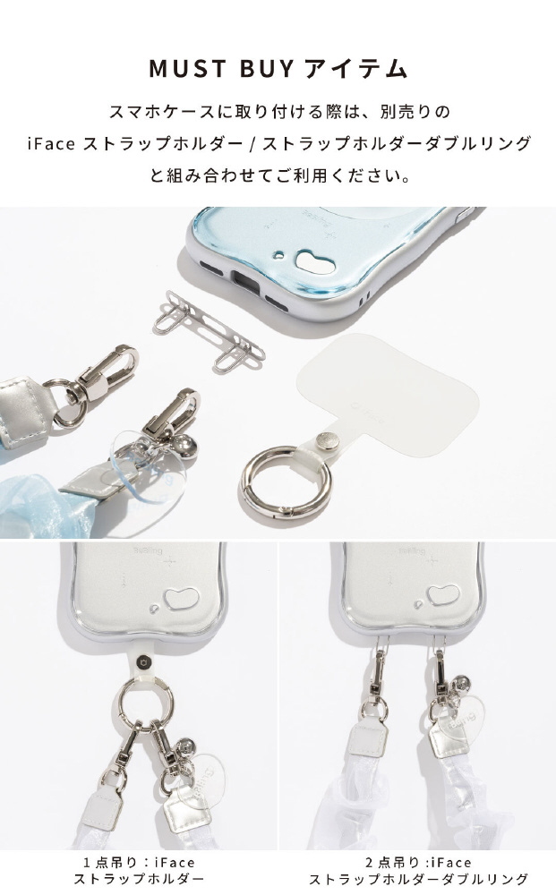 ※ストラップホルダーを併用する場合は、iFaceから発売している公式製品をご使用ください。類似品ではiFaceケースと併用の使用感を保証しかねるため、ご注意ください。