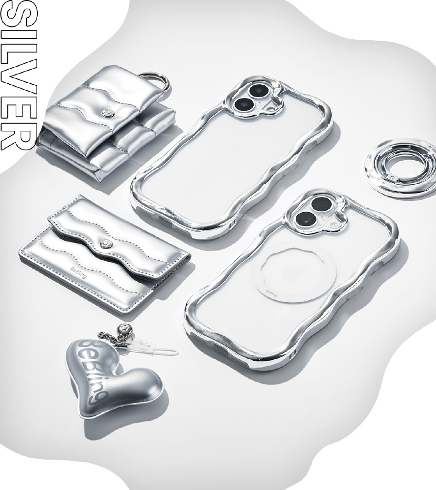 ウェーブデザインと美しい光沢感を備えたクリアケース。