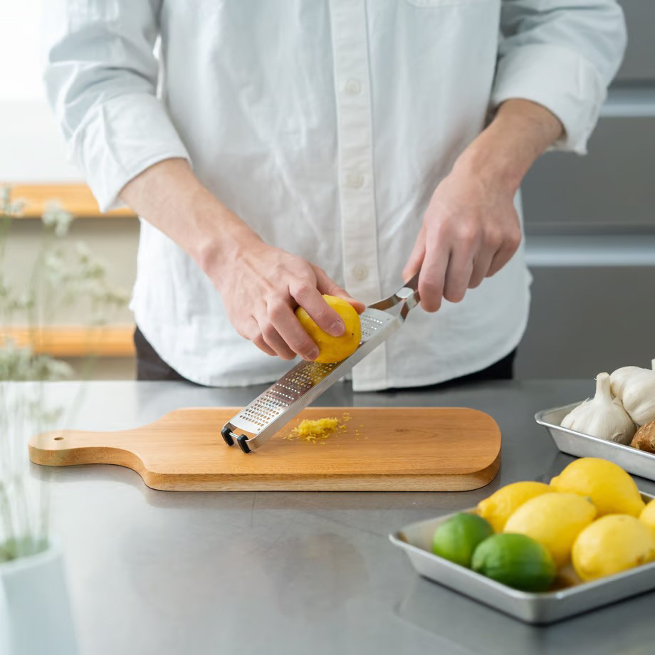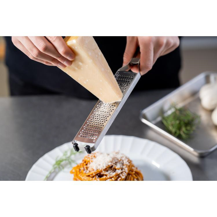 またエバーおろしProはハンドル付なので、パスタの上に直接チーズをすりおろしたり、お鍋やフライパンの上で直接ニンニクや生姜をすりおろして入れたりするのに便利な形状となります。