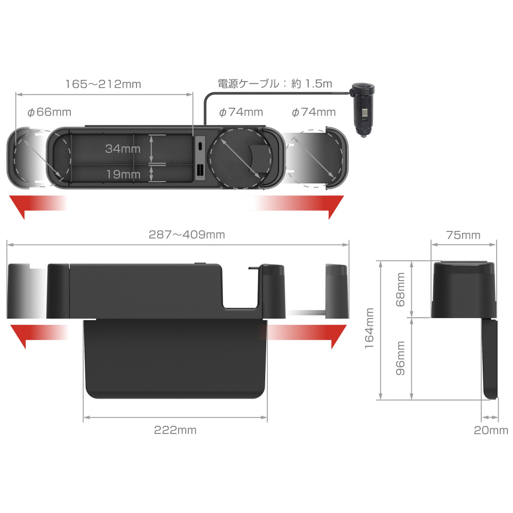 用途にあわせ多彩に変形!シート横に増設できる収納ポケット&ドリンクホルダーUSB-A/Cポート付