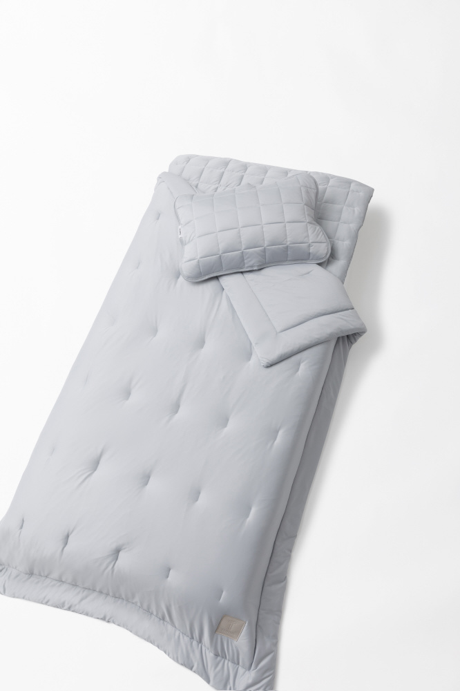 肌に触れる生地には、柔らかく、耐久性も向上したシルキータッチな微起毛スムースニット生地を採用。中わたを包み込む心地よい掛け心地を実現しました。