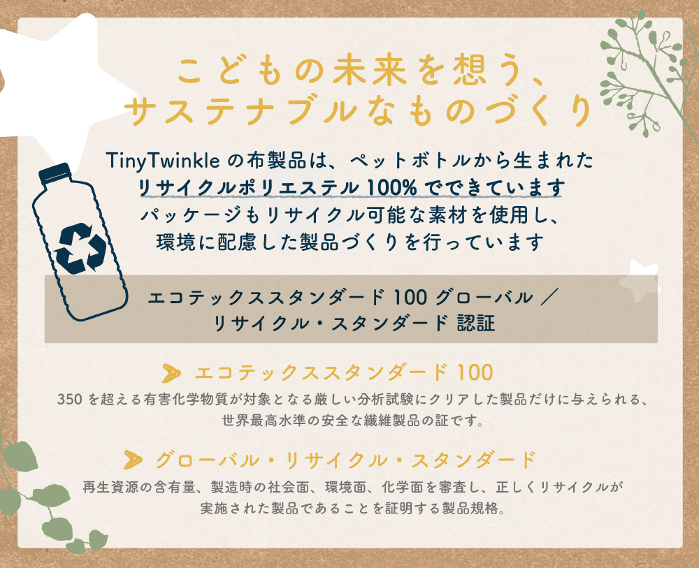ペットボトルから生まれた環境にやさしいリサイクルポリエステル(rPET)を100%使用しています。