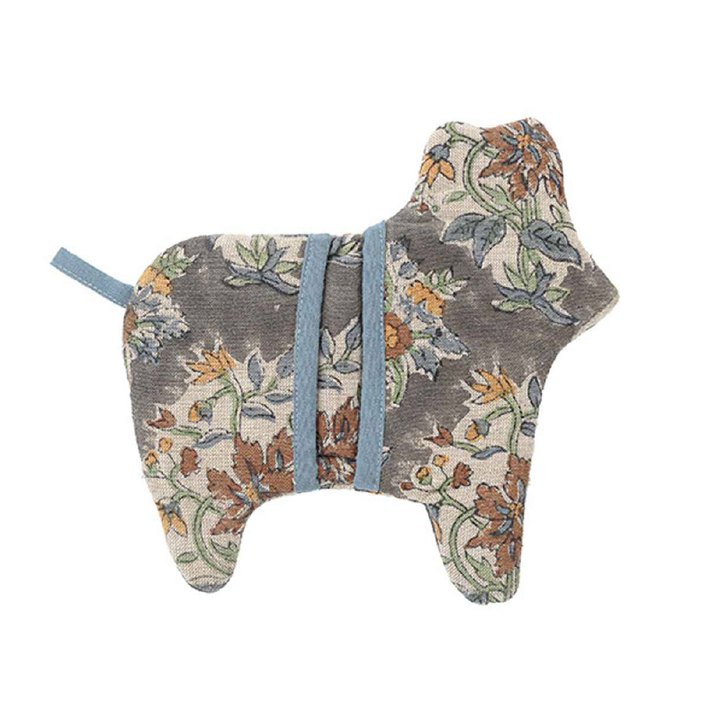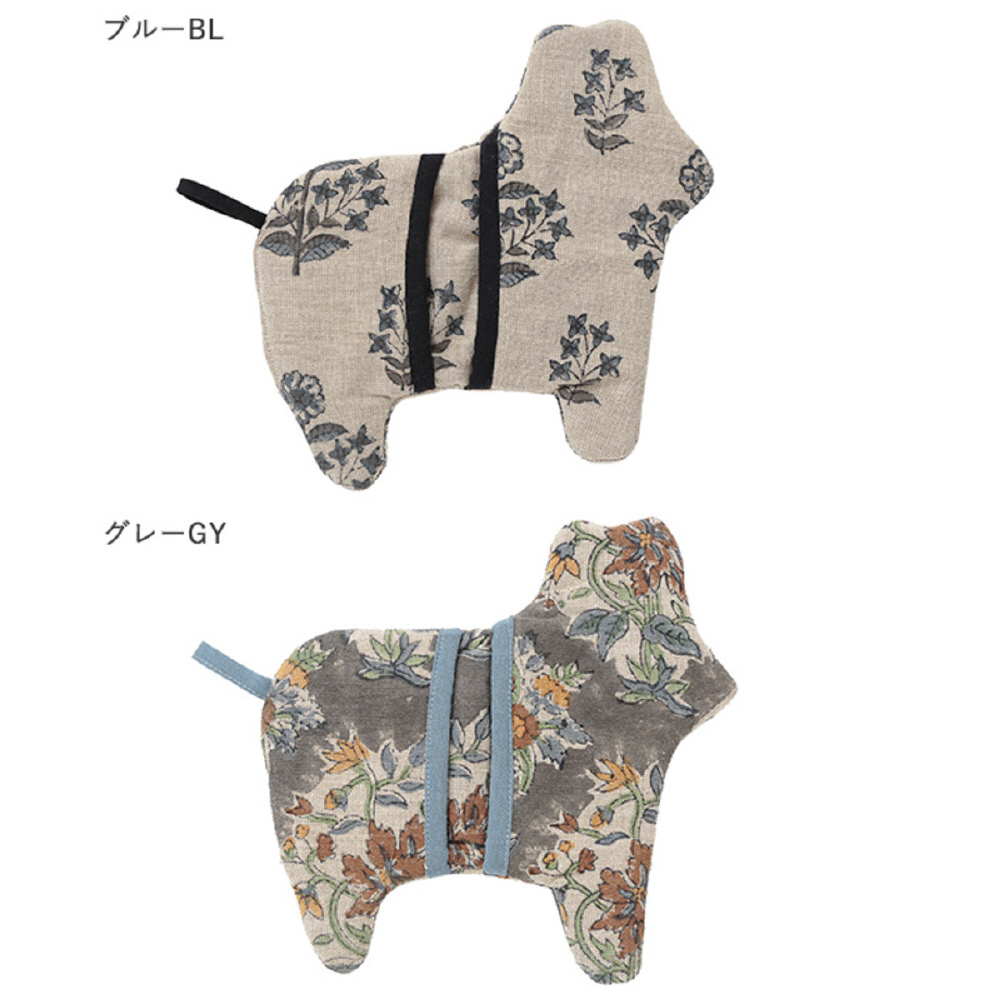 鍋掴み シャンブレーブロックプリント ポニー ミトン グレー