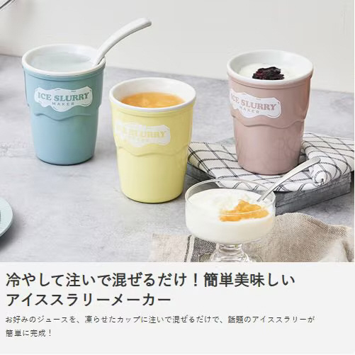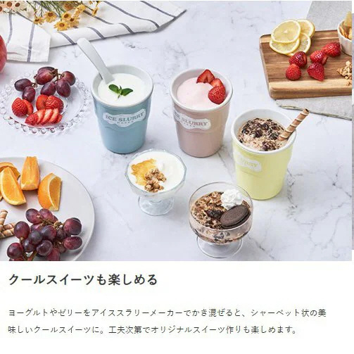 ヨーグルトやゼリーをアイススラリーメーカーでかき混ぜると、シャーベット状の美味しいクールスイーツに。工夫次第でオリジナルスイーツ作りも楽しめます。