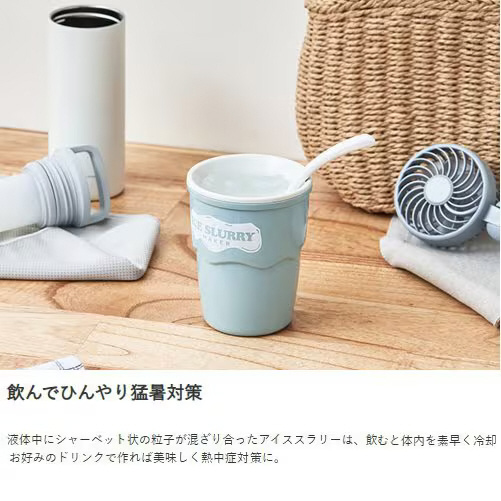 液体中にシャーベット状の粒子が混ざり合ったアイススラリーは、飲むと体内を素早く冷却!お好みのドリンクで作れば美味しく熱中症対策に。
