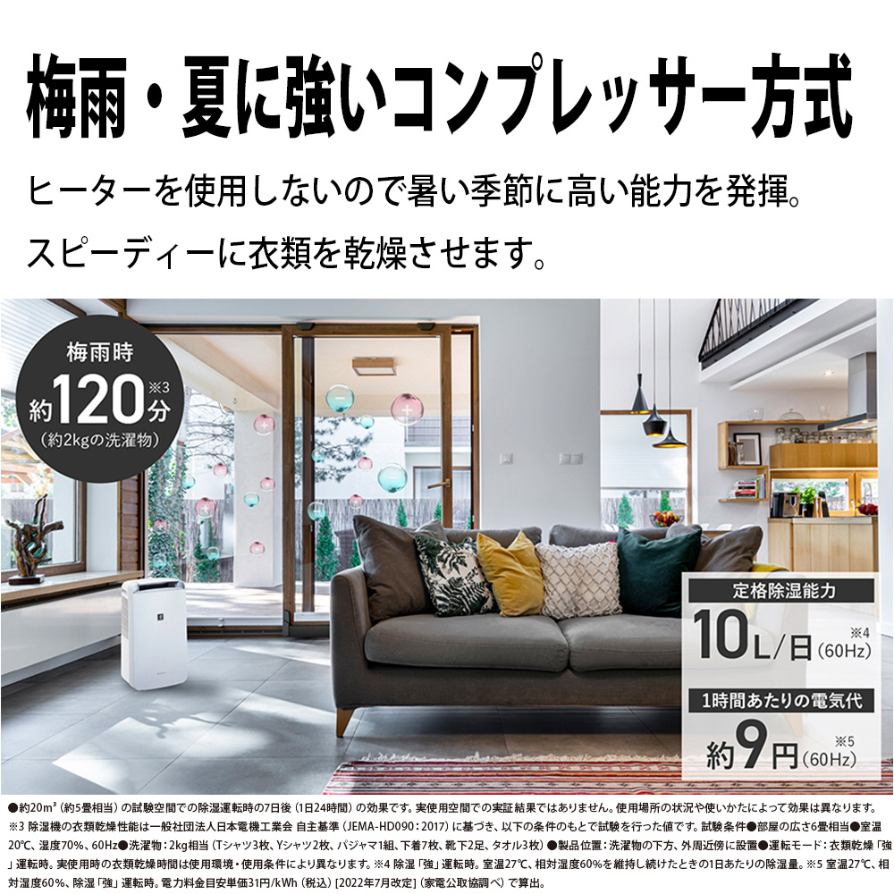 プラズマクラスターで部屋干し衣類の生乾き臭を消臭しながら、衣類を乾燥。お部屋を除湿しながら、付着カビ菌の増殖を抑制※1。洗いにくい衣類の汗臭を消臭し、お部屋のカーテンなどに付いたタバコの付着臭を分解・除去¥※2。