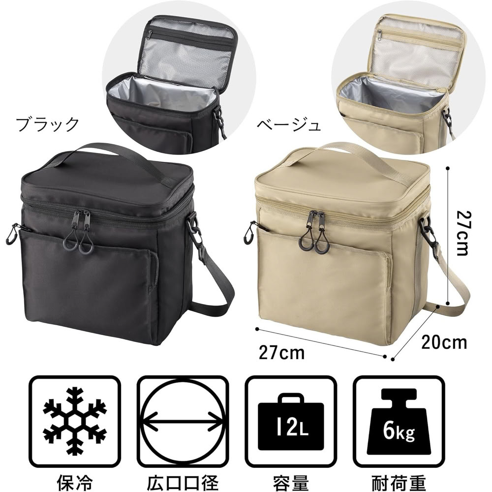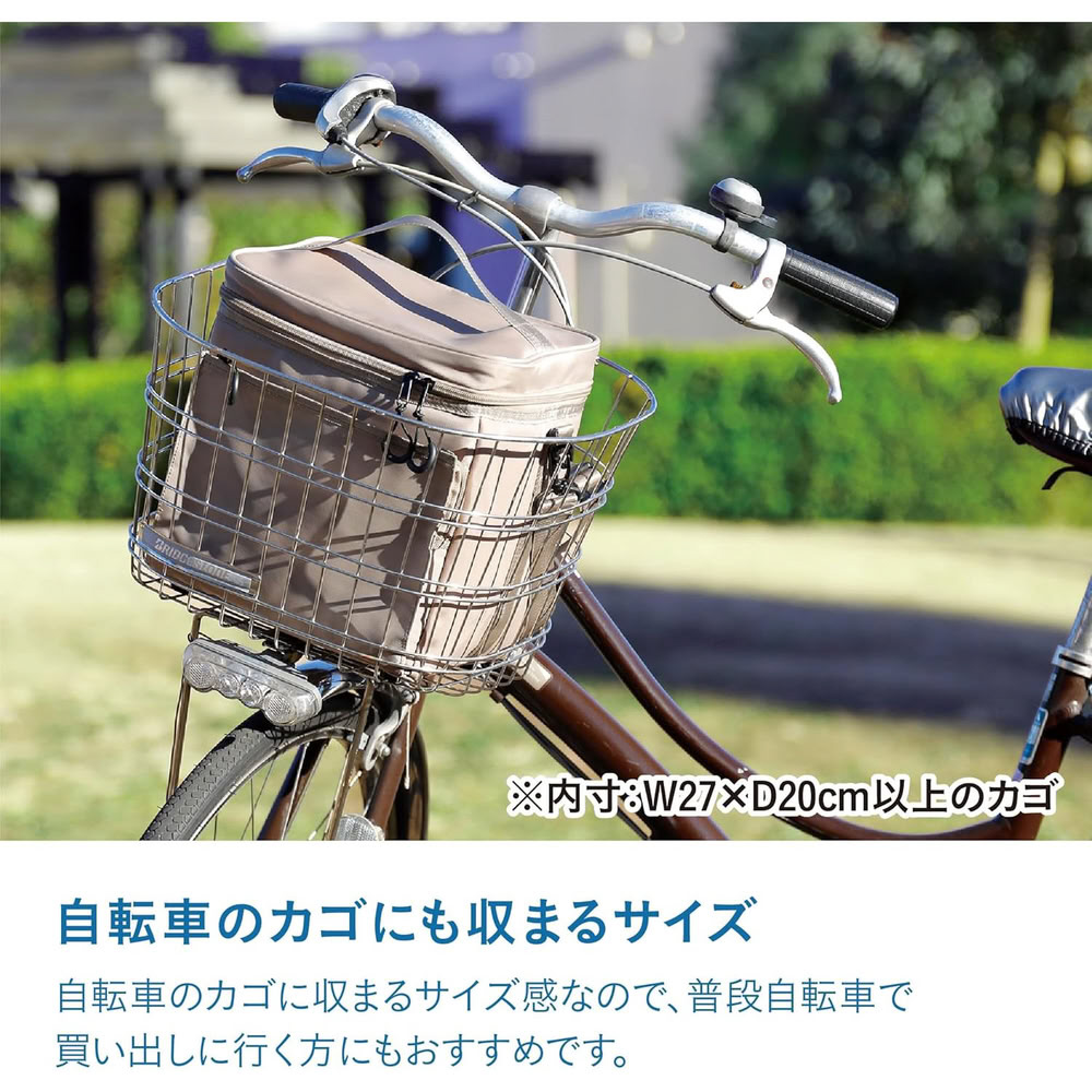 また外寸W27×D20×H27cmのコンパクト設計なので、自転車のカゴに入れて持ち運べます。コンパクトながらも容量は12Lとたっぷり。ペットボトルなら12本を立てて収納出来ます。