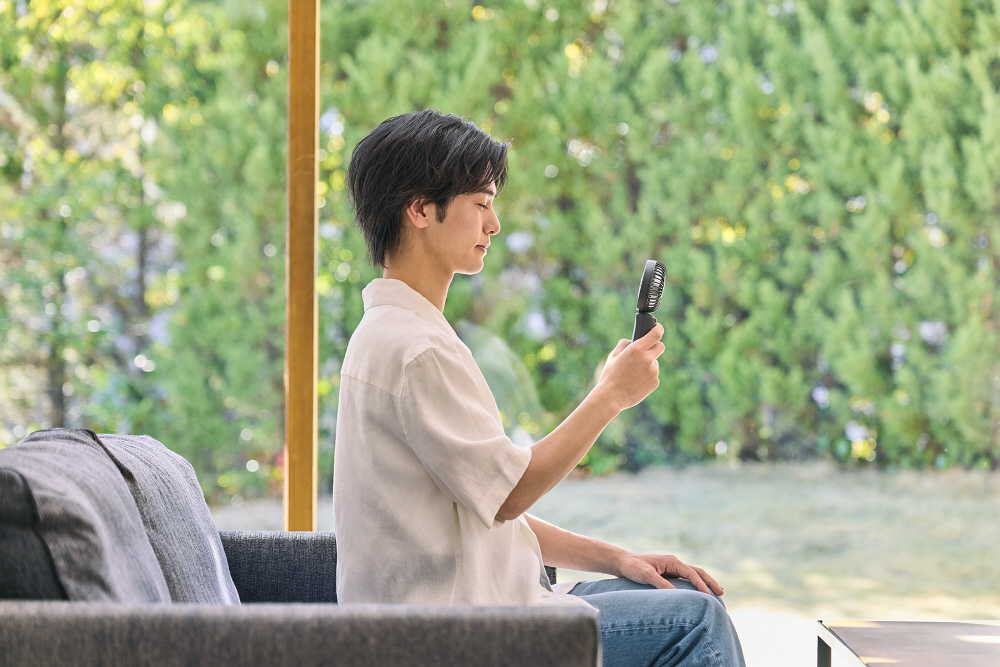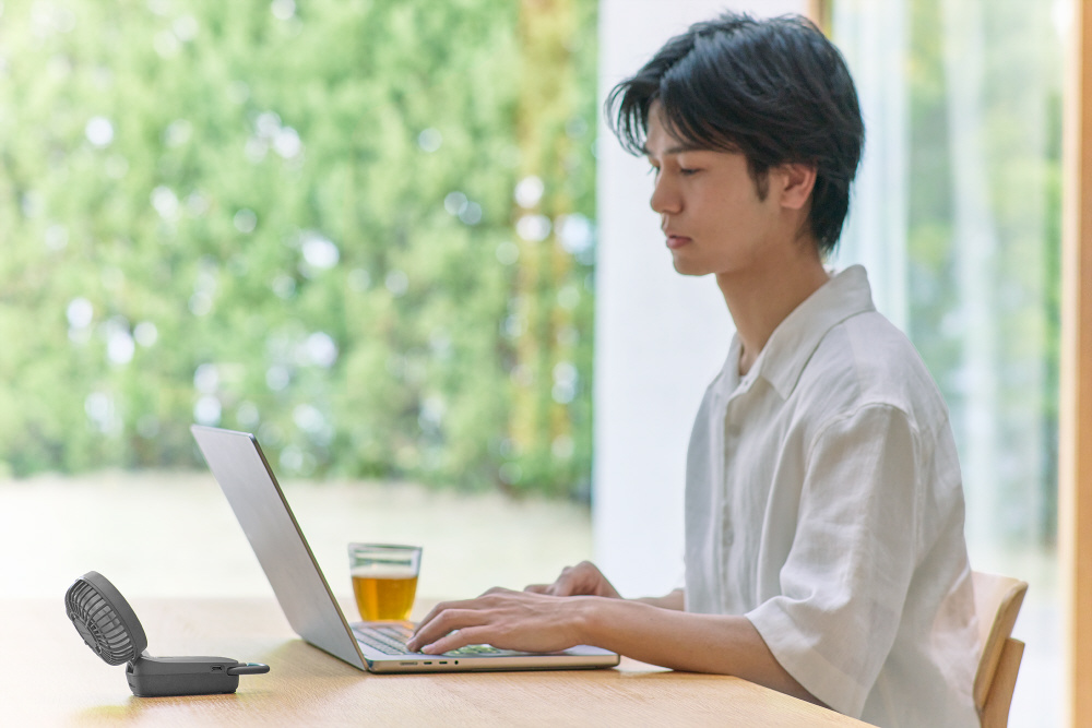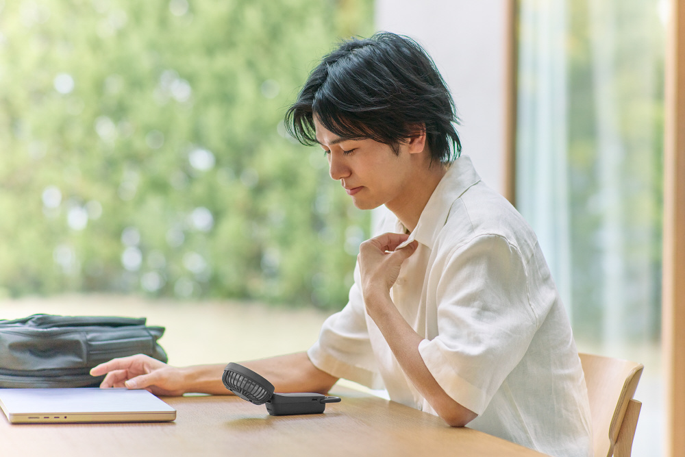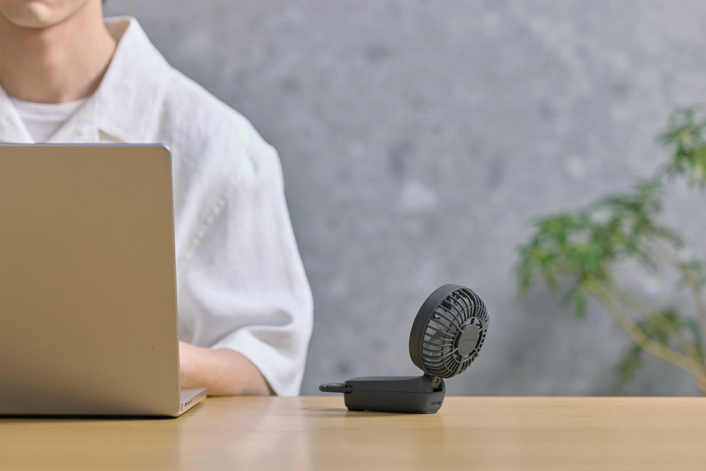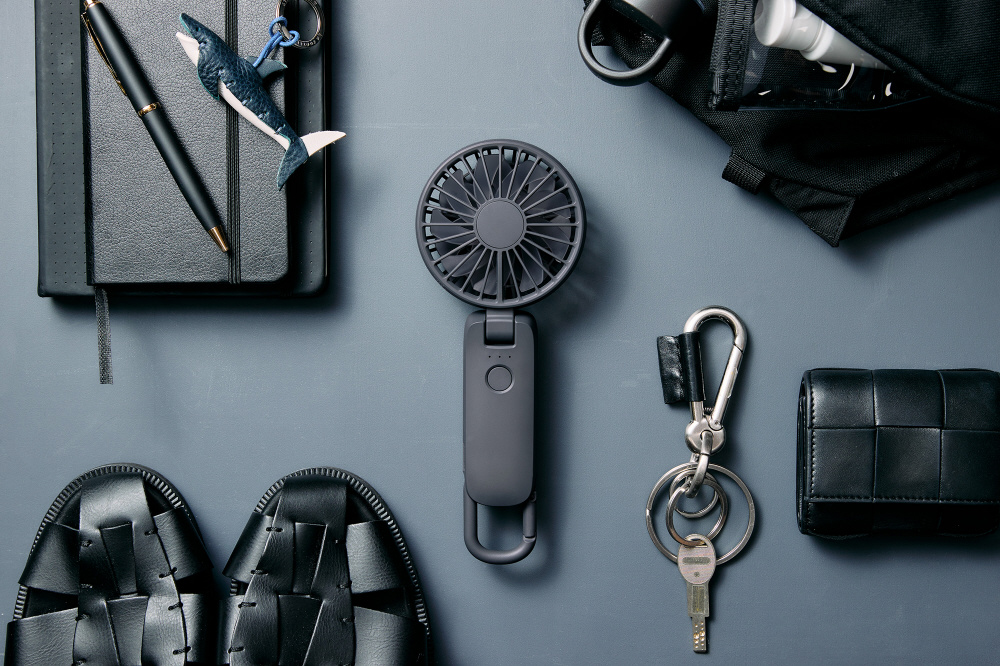 2重反転ファン×3way×カラビナ×充電式。いつでも、どこでも、大風量のモバイルファンです。