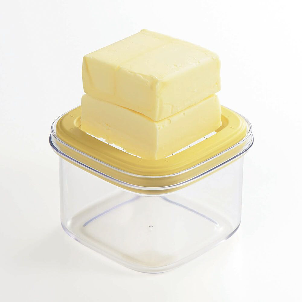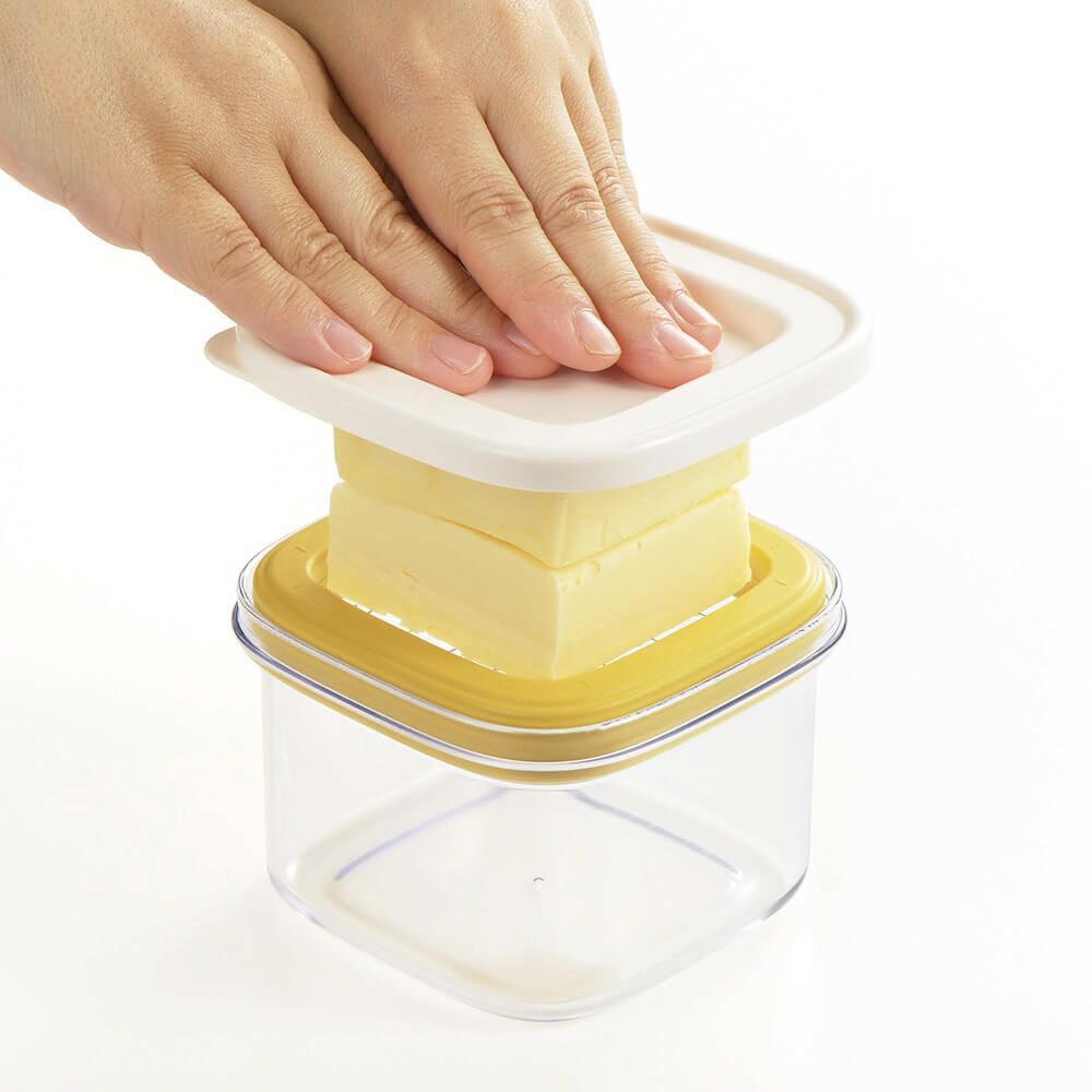冷蔵庫から出したばかりの冷たくて硬いバターをカットでき、そのまま保存できるケース