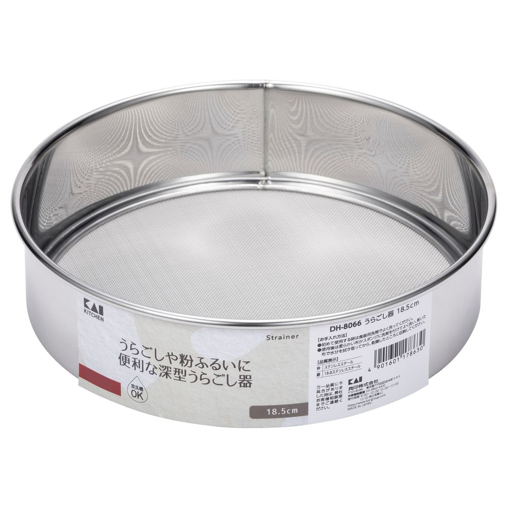 いもやかぼちゃの裏ごしや粉ふるいに便利な、18.5cmの深型うらごし器です。食洗機可能なので、お手入れ簡単です。