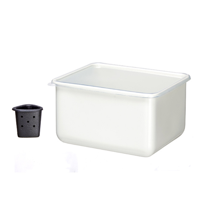 仕様1 材質:本体/ホーロー用鋼板 板厚/0.6mm 表面加工/ホーロー加工 フタ/ポリエチレン 水取り器/鋳鉄