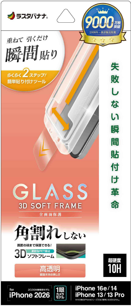 iPhone 17e/16e/14/13/13Pro フィルム 貼付革命 ソフトフレームガラス 光沢 MTK5299IP6E