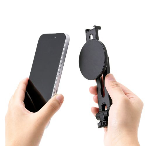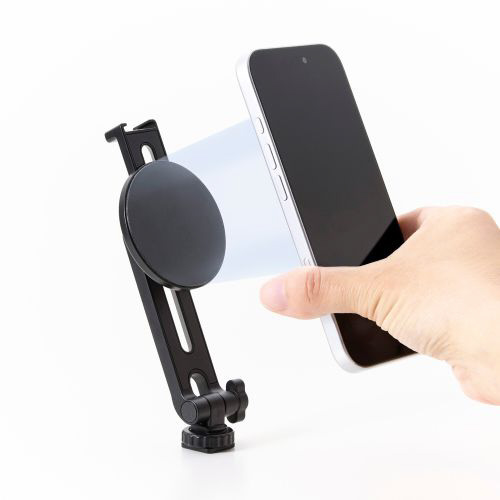 磁石の力でスマートフォンをワンタッチで着脱できる、カメラ用マウントです。