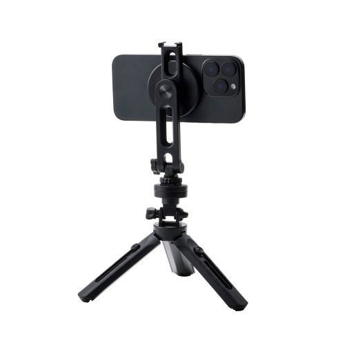 MagSafe対応 スマホホルダー 三脚 カメラマウント マグネット式 360度回転 コールドシュー付き 1/4ネジ穴 iPhone 一眼レフ対応 軽量 コンパクト MAGKEEP ブラック P-STMCBK