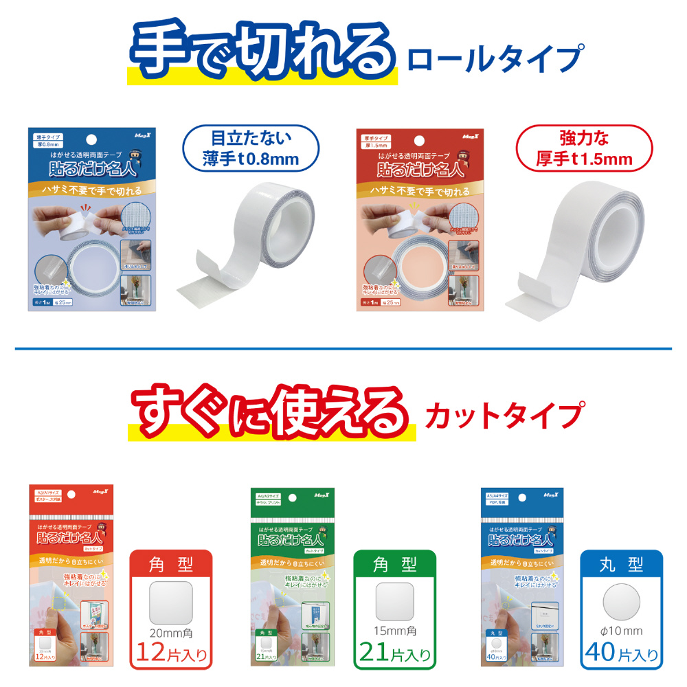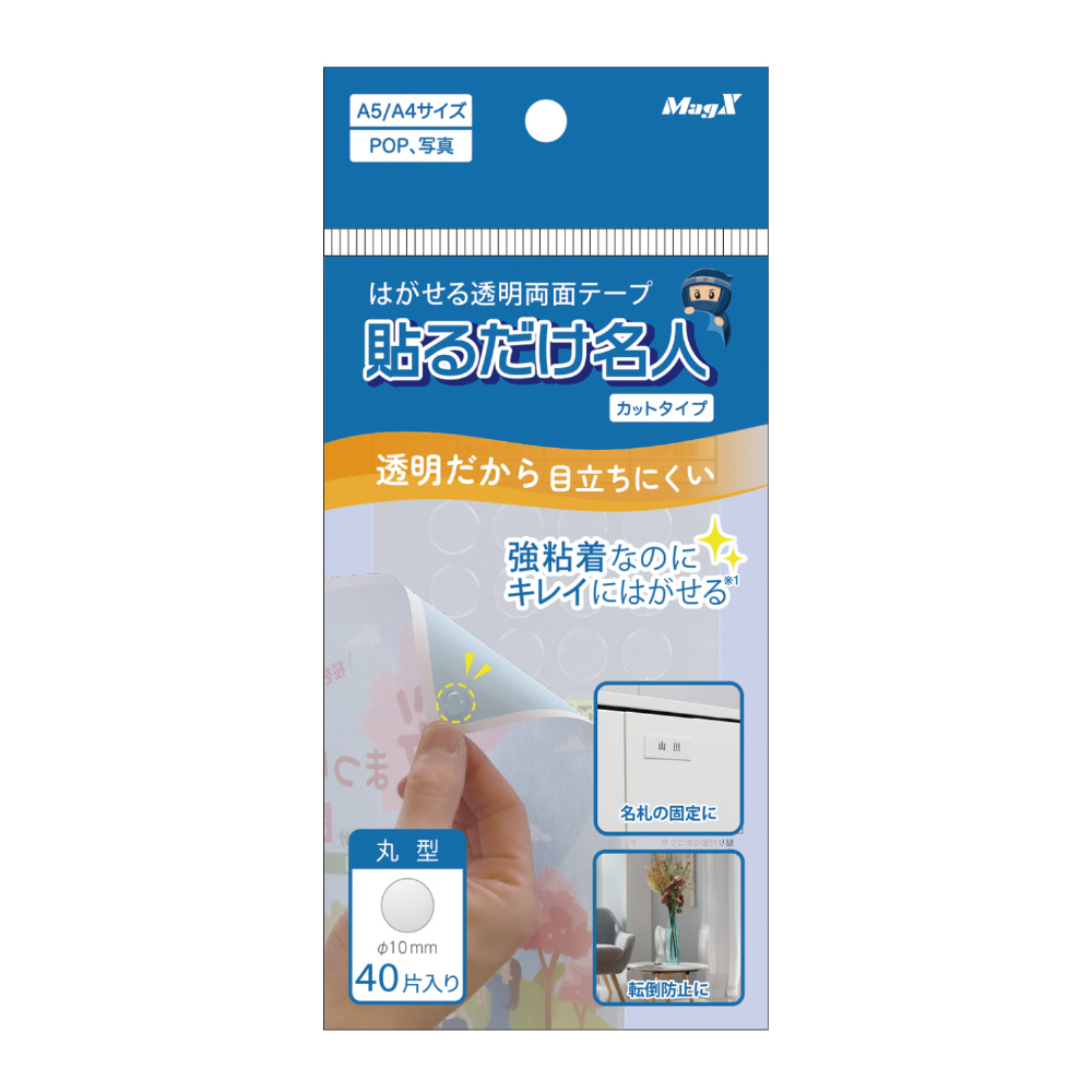 はがせる透明両面テープ 貼るだけ名人 カットタイプ 丸型40片 MGELC-40