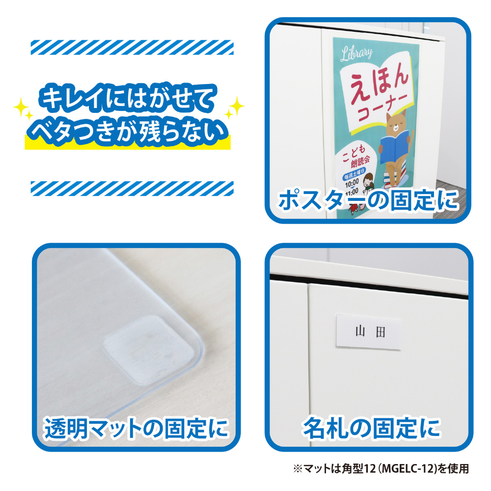 ●ポスターや名札など掲示物を邪魔せずしっかり固定!