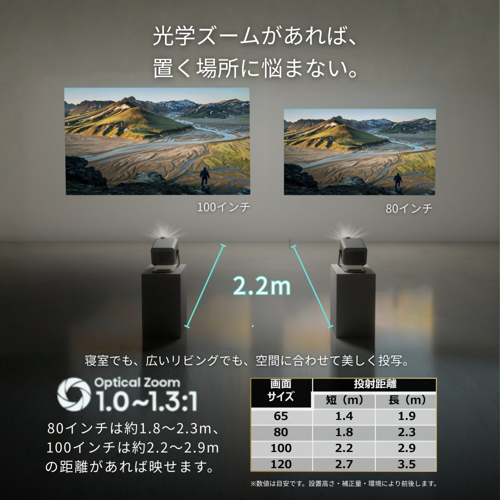 ◆光学ズーム搭載で、スペースを選ばず大画面【光学ズーム】