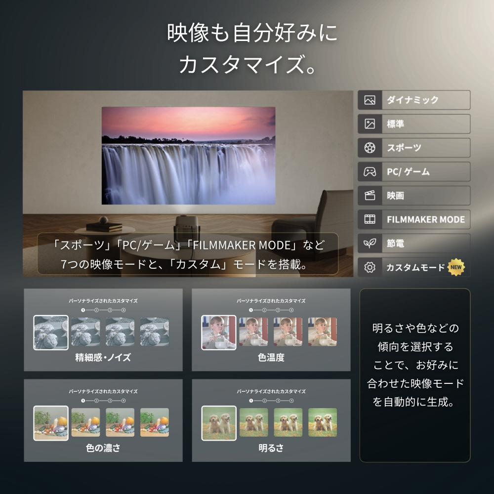 光学ズーム搭載だから、画面サイズや画質はそのままに、ストレスなくお部屋の好きなところで視聴できます。
