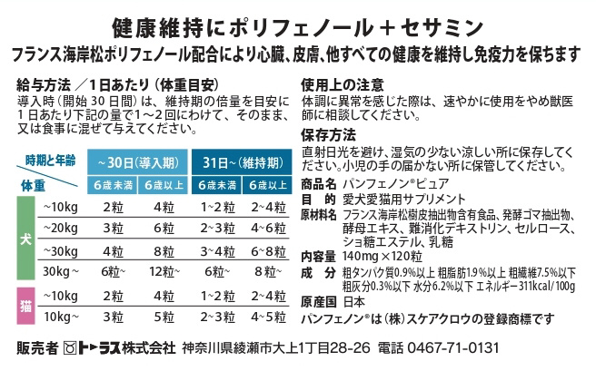 ・フランス海岸松ポリフェノール配合により心臓、皮膚、他すべて・の健康を維持し免疫力を保ちます。