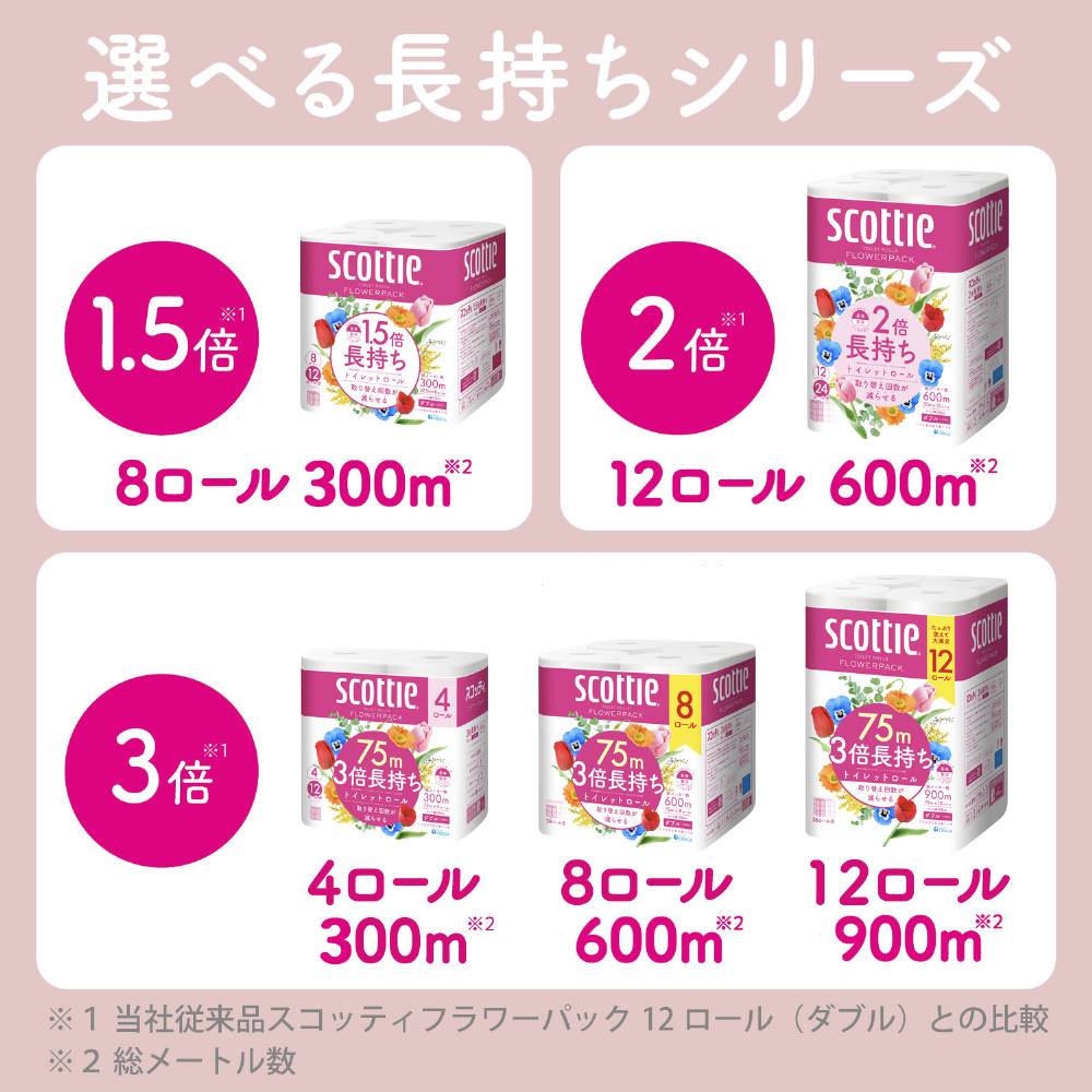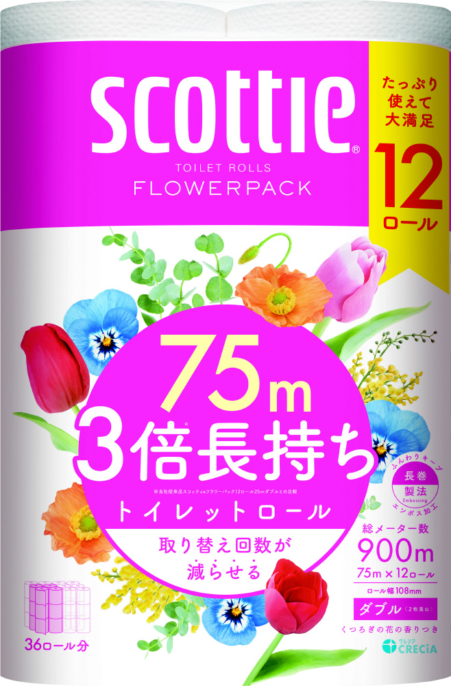 スコッティ トイレットロール フラワーパック 3倍長持ち 75m 12ロール (ダブル)