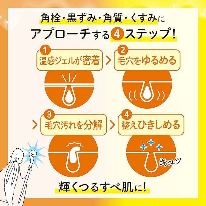 スチーマー発想のあつめの温感ジェルがメイク・皮脂汚れを溶かし、毛穴の奥からごっそりオフ!明るい透明感のある毛穴レス肌に!