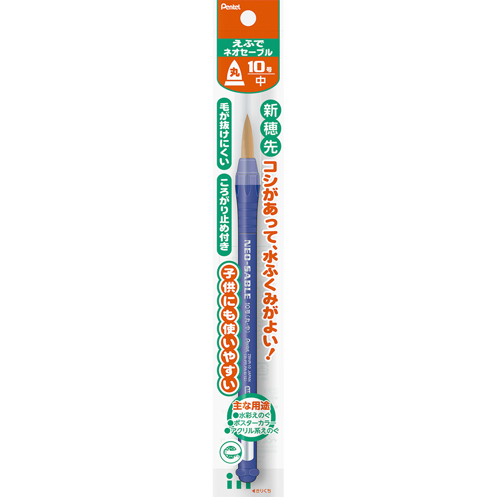 画筆 ぺんてるえふで ネオセーブル 丸筆 10号 パック入り XZBNR-10