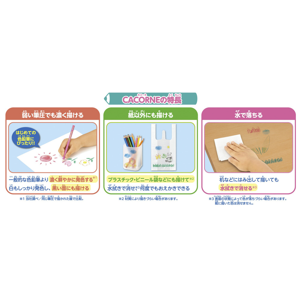軽い筆圧でもしっかりと発色し、子どもたちの創造性をサポートします。