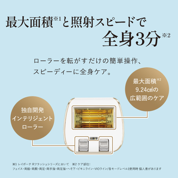 最大面積※10 9.24平方センチメートルの広範囲ケアと照射スピードで全身3分※11
