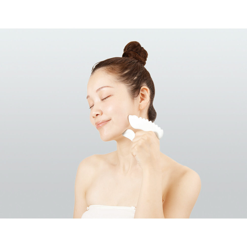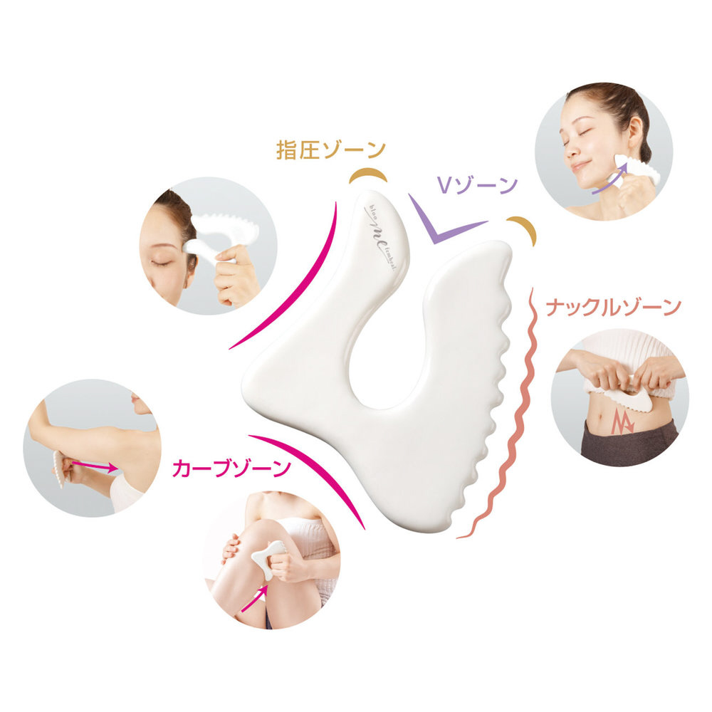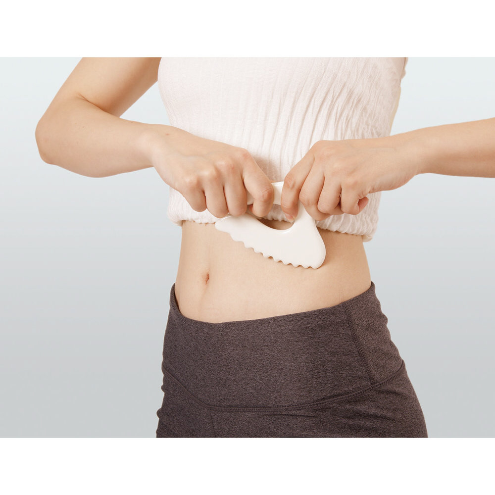 力の入りやすい、大き目サイズのカッサで全身ケア。大き目のカッサなので、広い面積もほぐしやすい。顔、おなか、二の腕、ふくらはぎを異なる面で刺激できます。水洗いできて清潔に使えます。