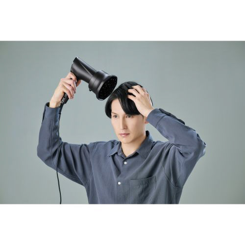 ドライヤーの吹き出し口に装着し、強い風を分散してやわらかな風に変えることで、ボリュームやパーマを残したまま乾かし、根元からしっかりボリュームを出します。乾かすだけで自然にふんわりと仕上がるので、猫っ毛など髪が細い方にもおすすめです。