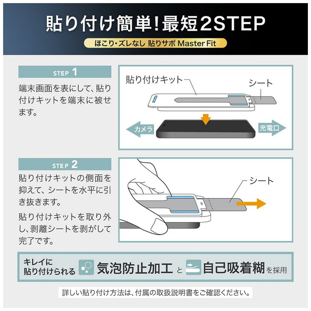 【貼りサポMaster Fit付属】【指紋認証対応】しなやかで強靭なゴリラガラスを採用/超硬度10H表面強化ガラス/指紋防止効果2倍持続/驚異的な透明度/アルコール洗浄布・ホコリ除去ラベル・クリーニングクロス付属