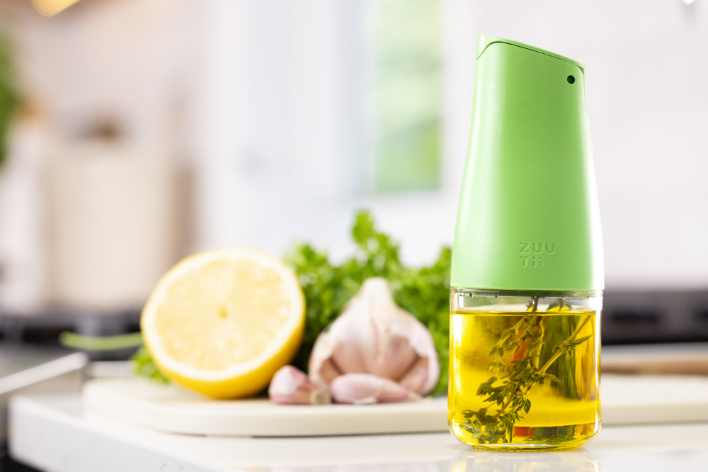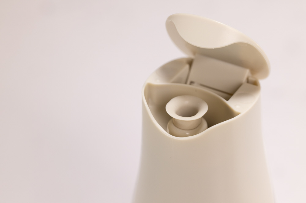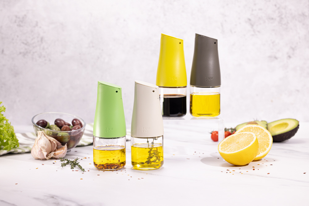 傾けるだけで蓋が開き、ボトルを縦にすると蓋が閉まります。忙しい料理中などにも手間な蓋の開け閉めが不要になります。