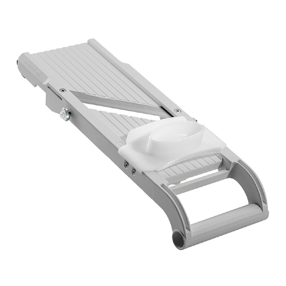 ●厚さ調節は、自由に厚さを調節できる、無段階の平行昇降機構の採用により、更に精緻で安定したスライス性能を実現。●ハンドル部分は、従来のスーパーベンリナーより柄の部分を長くし、湾曲部分の落ち込み角度を深くすることによって、ゆとりのある空間を確保、スライス時の両手の交差がスムーズにできます。●ブレードケース付きで、付属の交換刃を収納可能。●ひっかけ足、滑り止め、料理に役立つ機能満載。●【まな板幅】:95mm。●【厚さ調整(ダイヤル方式)】:0.5mm~8mm。●【使用条件】:温度-10°C~70°C。●【食器乾燥機・食洗機】:不可。●【食品衛生法】:適合。
