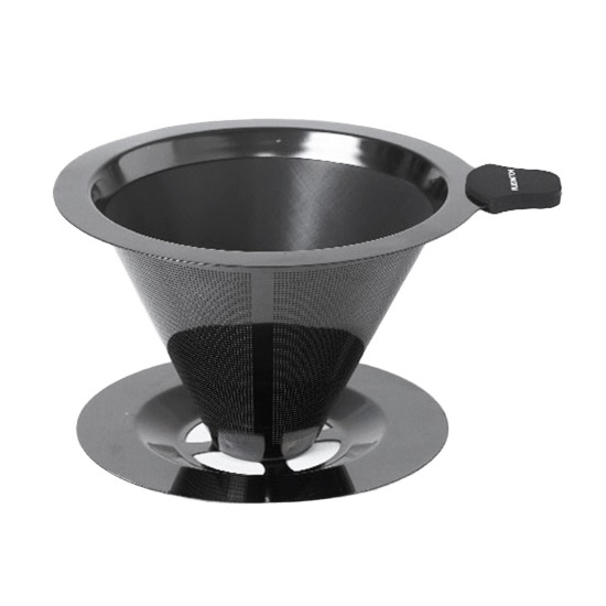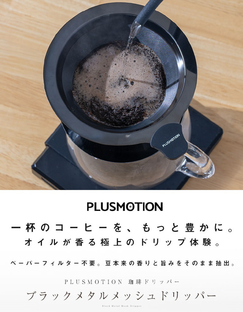 「PLUSMOTION ブラックメタルメッシュドリッパー」は、微粉が入りにくく、なめらかでクリアな味わいを引き立てます。