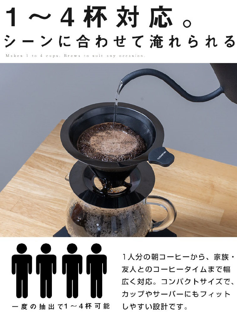 二重構造の金属メッシュフィルターにより微粉の漏れを抑え、なめらかでクリアな味わいを実現。