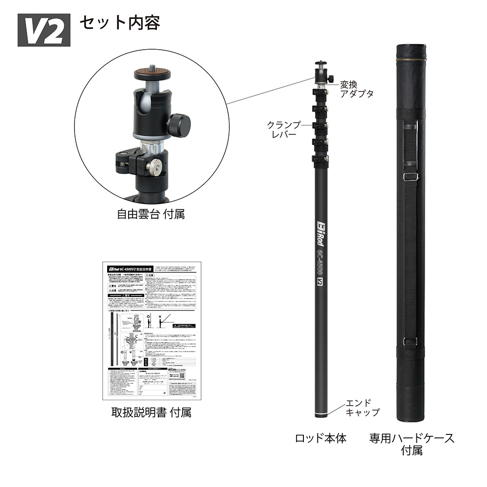 ハイアングル撮影用一脚[Bi Rod(ビーアイロッド) 6C-4500V2] [4.5m / 6段 / カーボン]