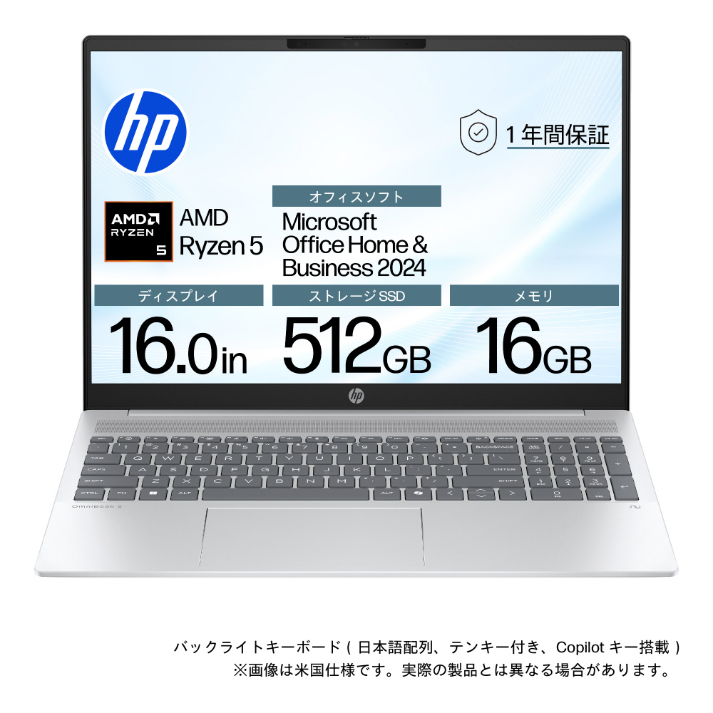 ノートパソコン OmniBook 5 グレイシャーシルバー BF8J3PA-AAAS [16.0型 /Windows11 Home /AMD Ryzen 5 /メモリ:16GB /SSD:512GB /Office Home and Business /日本語版キーボード]