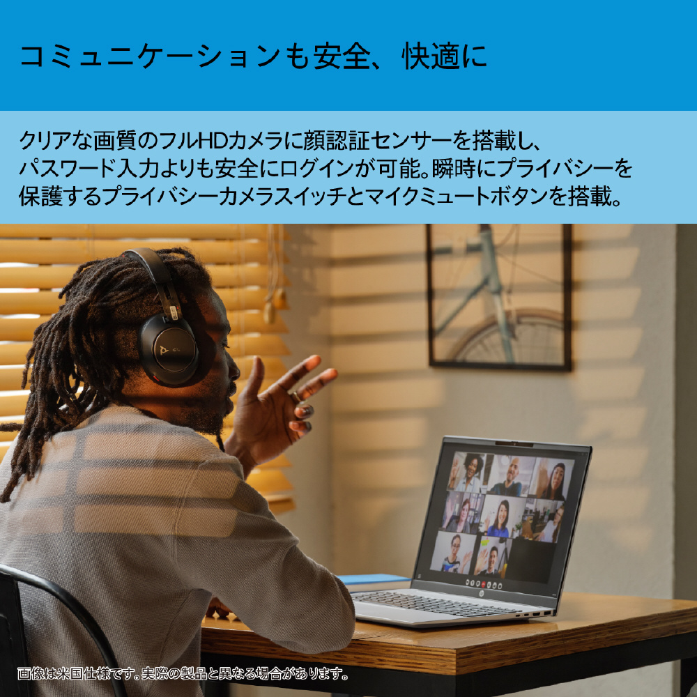 クリアな画質のフルHDクリアな画質のフルHDカメラに顔認証センサーを搭載し、パスワード入力よりも安全にログインが可能。瞬時にプライバシーを保護するプライバシーカメラスイッチとマイクミュートボタンを搭載。