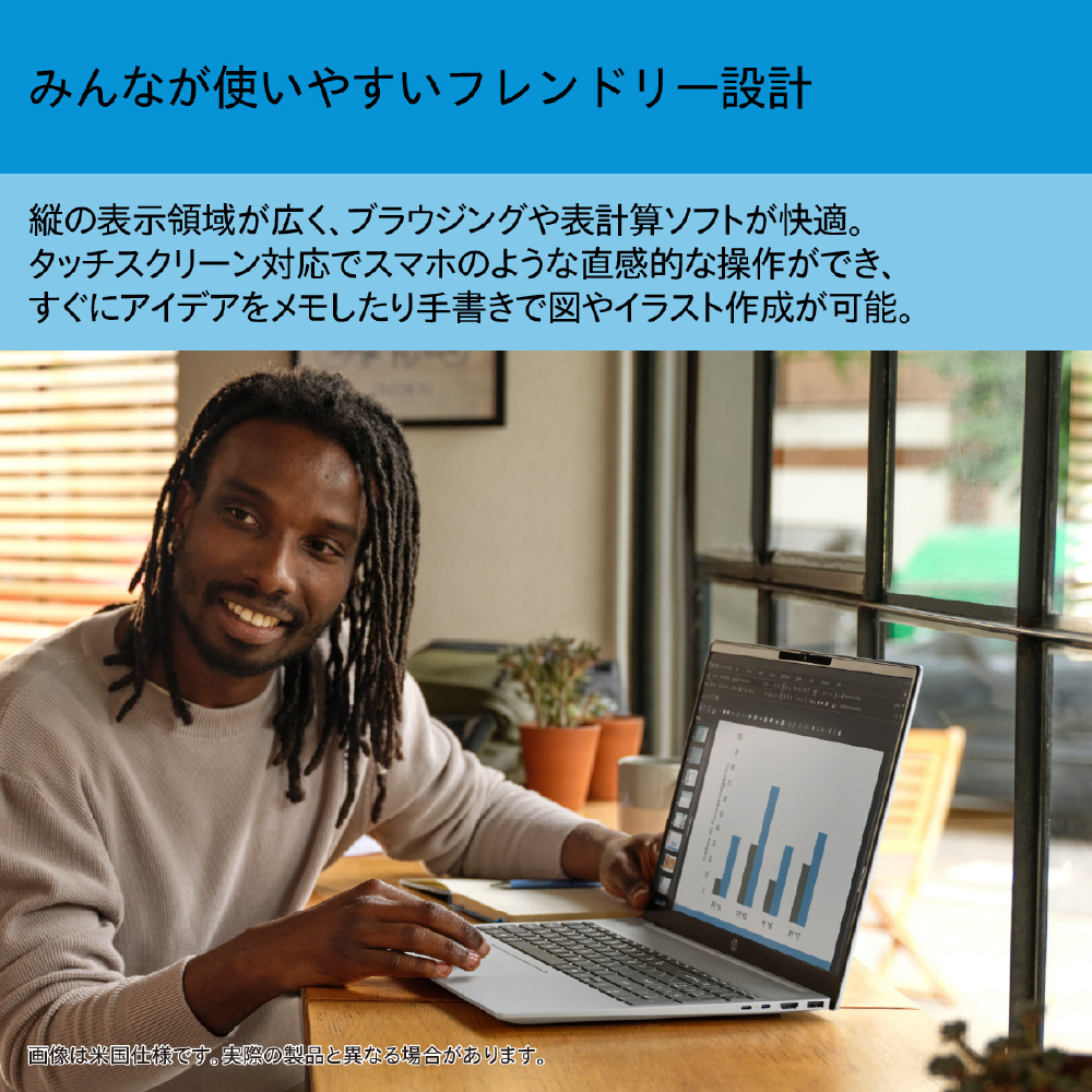 縦の表示領域が広く、ブラウジングや表計算ソフトが快適。タッチスクリーン対応でスマホのような直感的な操作ができ、すぐにアイデアをメモしたり手書きで図やイラスト作成が可能。