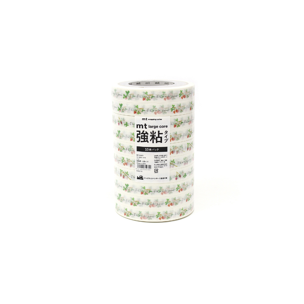通常のマスキングテープより粘着力を高めた、強粘着タイプ。ナチュラルな色彩とやさしい質感が美しい無地の太芯テープです。お弁当や紙袋のふ「封留め」に最適!既存のテープカッターにセットして使えるので、作業もスムーズです。お得な10巻パックです。