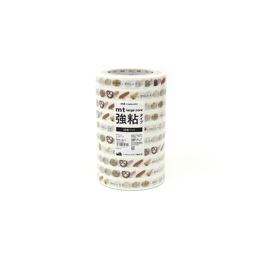 通常のマスキングテープより粘着力を高めた、強粘着タイプ。ナチュラルな色彩とやさしい質感が美しい無地の太芯テープです。お弁当や紙袋のふ「封留め」に最適!既存のテープカッターにセットして使えるので、作業もスムーズです。お得な10巻パックです。